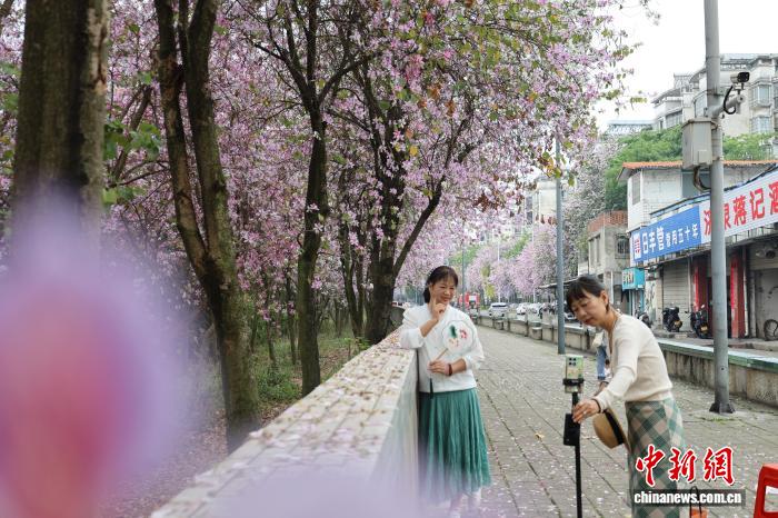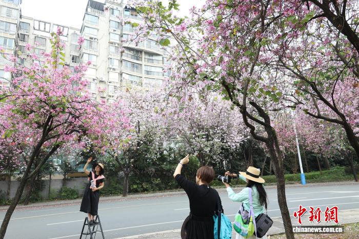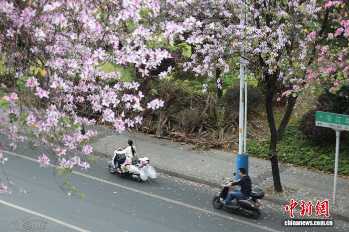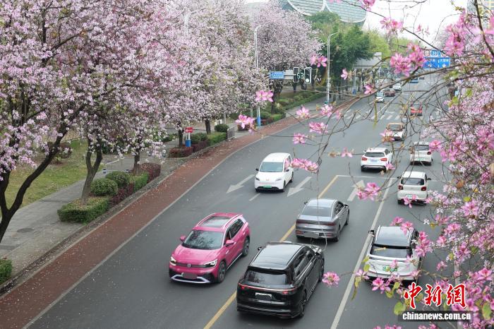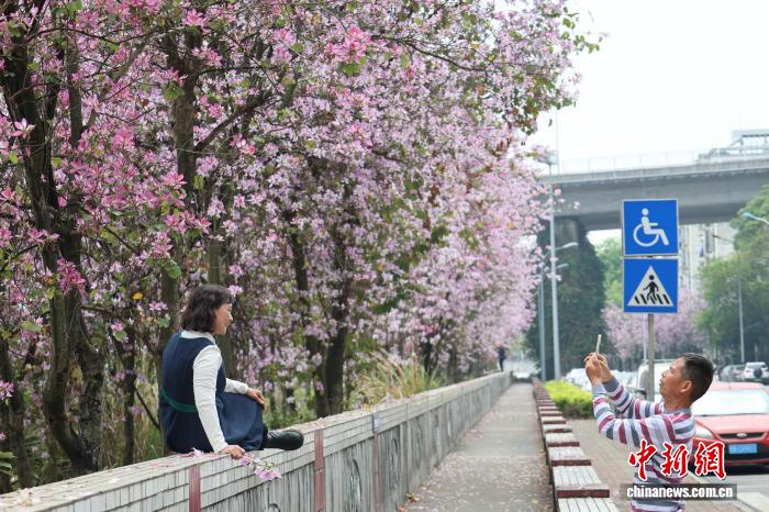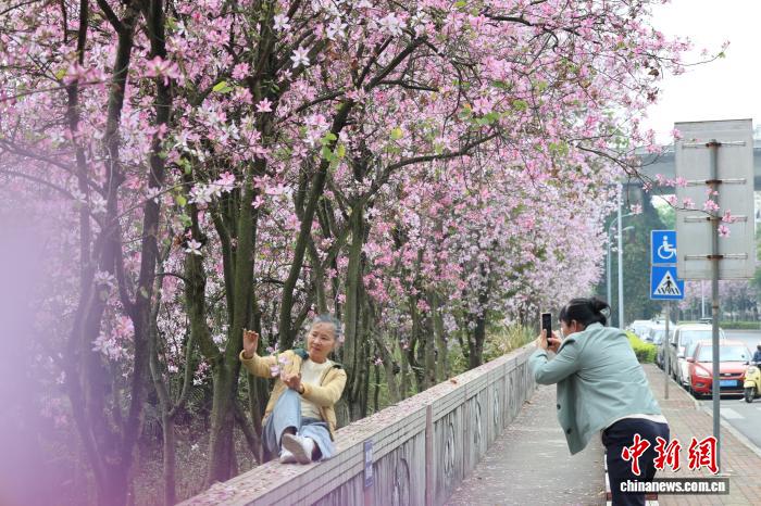 广西柳州变“紫荆花城” 引民众“花式”赏花